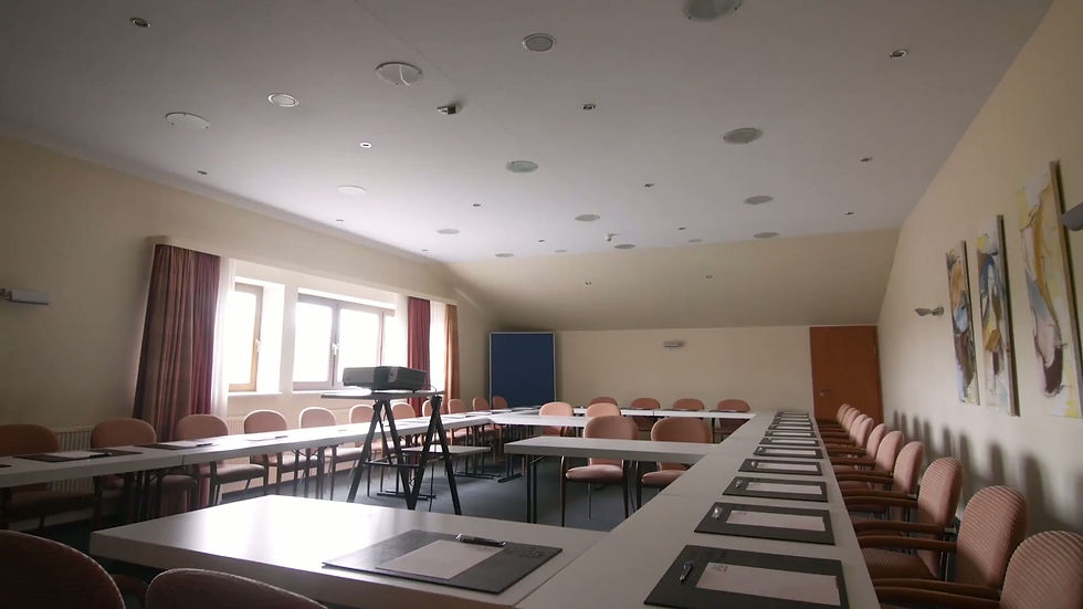 Unsere Tagungsräume sind auf die Bedürfnisse von Firmen und Organisationen abgestimmt. Die moderne technische Ausstattung, wie **FlipChart**, kostenloses WLAN, **Moderationskoffer**, **Pinnwand**, **Leinwand**, **Beamer** und **Overheadprojektor**, ermöglicht eine reibungslose Durchführung Ihrer Veranstaltungen.